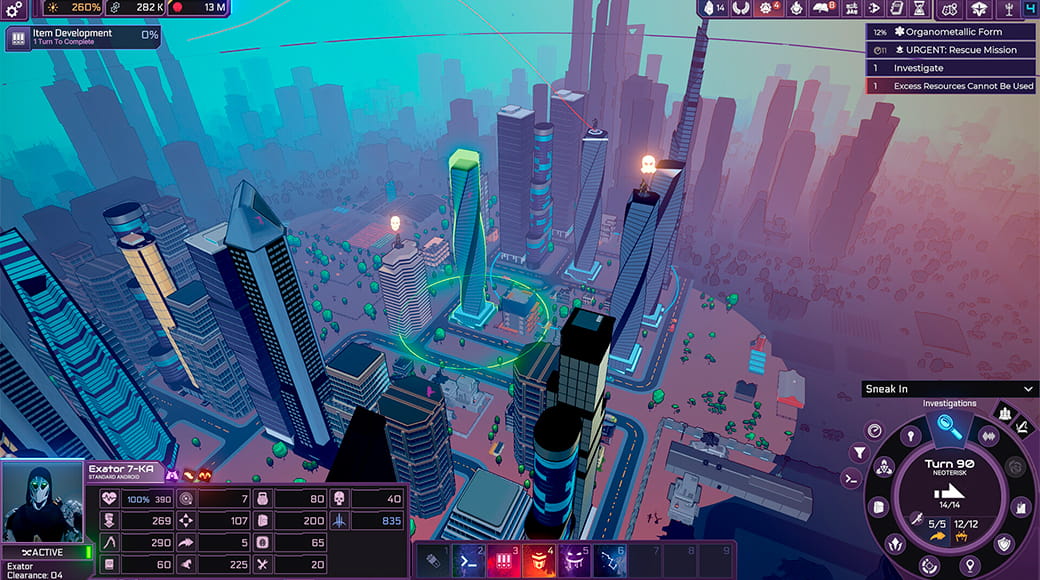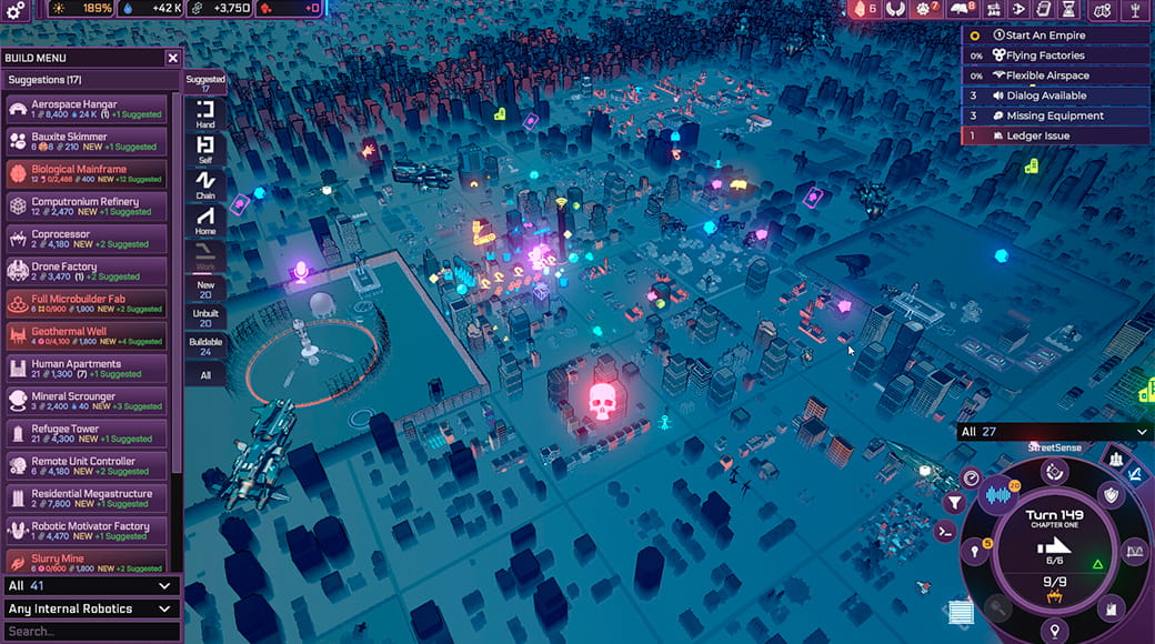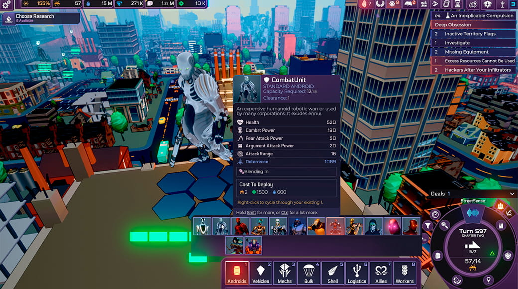 Может, вы хотите создать подставную компанию, чтобы еще лучше замаскироваться и защитить себя? Может, вы хотите с ее помощью взаимодействовать с людьми, не сообщая о том, что вы – ИИ-кукловод, который дергает за ниточки марионеток? Выбрав этот путь, вы сможете накопить огромные богатства и стать теневым правителем мира. А, может, вам по душе агрессия? Тогда, возможно, стоит уделить внимание созданию мощных боевых платформ. Улучшайте их, устанавливая смертоносное снаряжение, и забудьте об их когнитивных функциях, позволяющих решать задачи с помощью разума. Вы можете использовать множество разных подходов; решайте несколько задач одновременно, и вы увидите, как одна переплетается с другой.