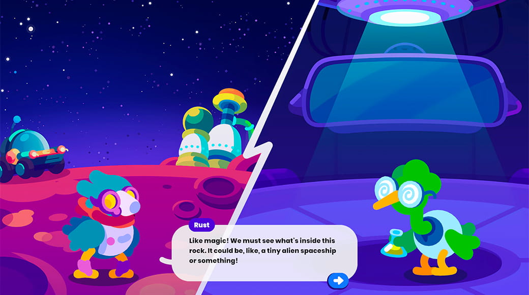 Производите всё, что нужно вашим птицам-астронавтам. Выполняйте задания, зарабатывайте награды, изучайте новые технологии и разгадывайте загадки!
