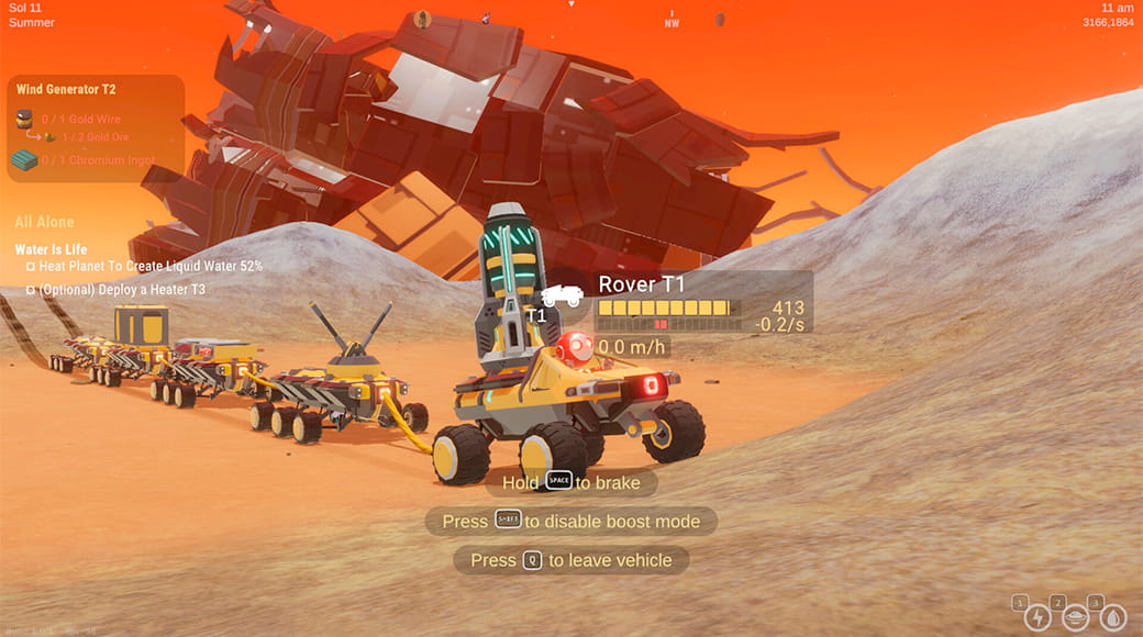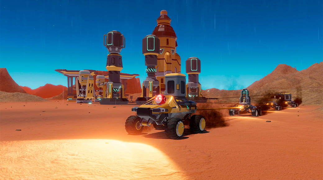 Создавайте и настраивайте модульные роверы, устанавливайте функциональные модули (батареи, хранилища, добывающие лазеры) и объединяйте их в конвои. Путешествуйте по планете, добывайте ресурсы на ходу и создавайте мобильные или стационарные аванпосты в любой точке мира. Ваша база не привязана к месту — она движется вместе с вами, позволяя исследовать Марс в планетарном масштабе.