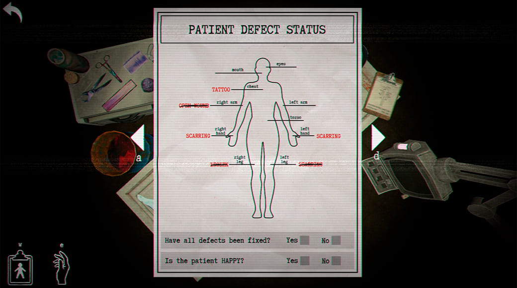 Короткая медицинская игра-симулятор с несколькими концовками, где несовершенные люди становятся счастливыми. Выполняйте задания и операции над пациентами под наркозом, чтобы исправить их недостатки, прежде чем отправить свои документы в Министерство счастья и мира.